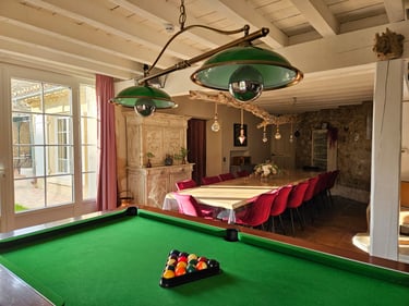 🎯Pour vos loisirs, vous profiterez d’une piscine chauffée, d’un jacuzzi, d’un terrain de pétanque, d’un billard américain, d’une console WiiU, d’un vidéoprojecteur, d’une bibliothèque et de nombreux jeux de société. 👧🧒Les enfants ne sont pas oubliés : trampoline, bac à sable, terrain de foot, puissance 4 géant, maisonnette et espace détente leur sont entièrement dédiés.